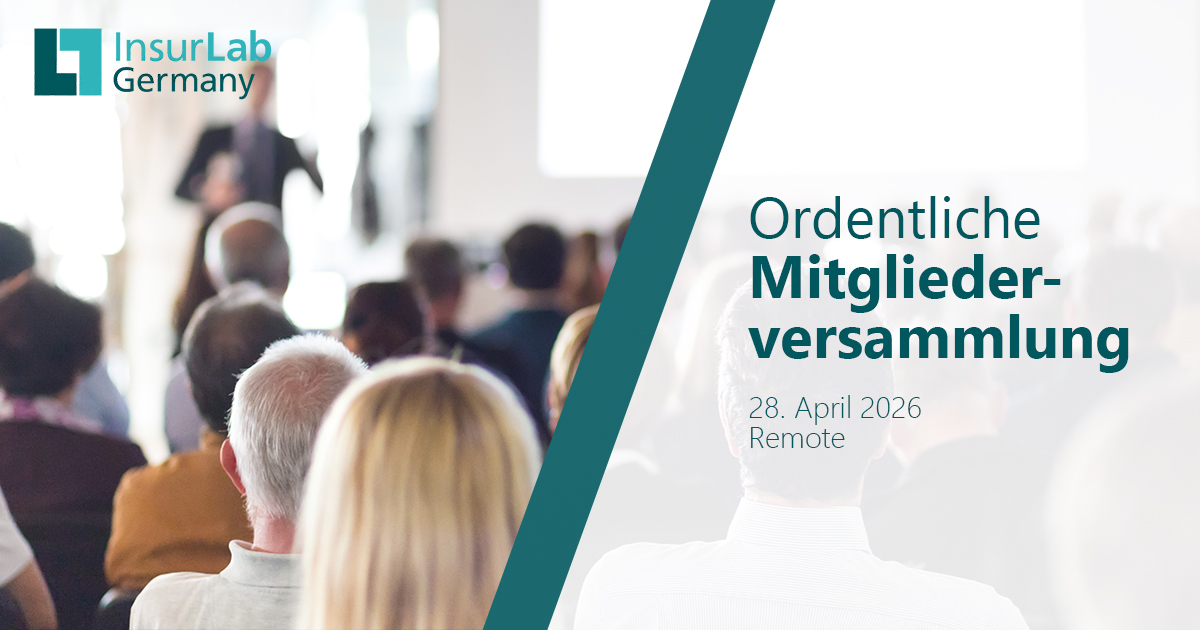 Im Namen unseres Vorstandsvorsitzenden Peter Stockhorst laden wir unsere Mitgliedsunternehmen herzlich zur diesjährigen ordentlichen Mitgliederversammlung des InsurLab Germany e.V. am 28. April 2026 ein.